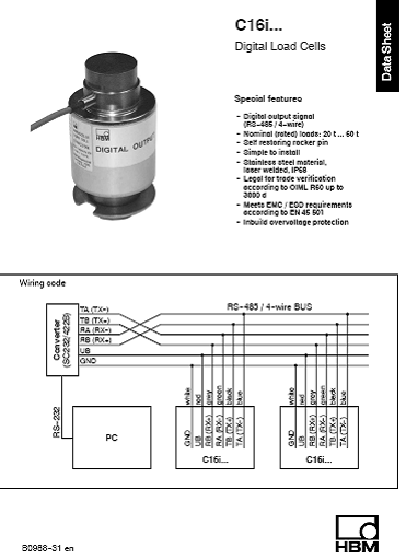德國HBM C16iC3/20T稱重傳感器技術(shù)參數(shù):