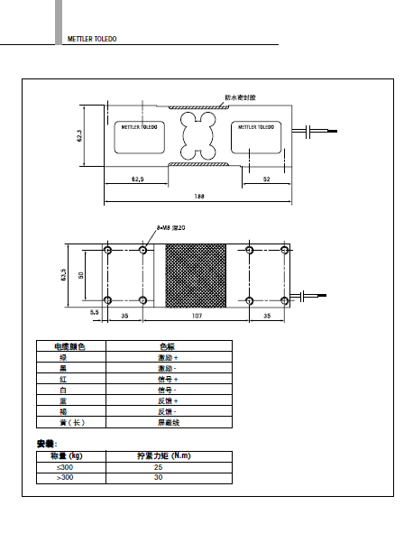 瑞士梅特勒托利多MT1260-250稱重傳感器各項(xiàng)技術(shù)指標(biāo)圖: