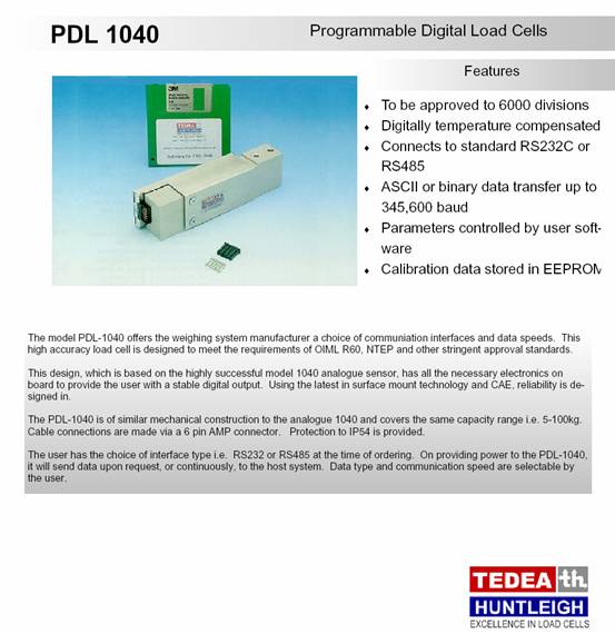 美國(guó)Tedea-Huntleigh 1040-20kg稱重傳感器描述: