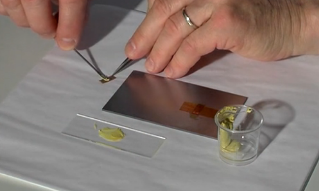 粘合劑盡管在包裝袋里報混合昏擠壓均勻,但是難免會留下小的顆粒,所以我們要用抹刀取出很小的一部分放在貼片上涂抹均勻。