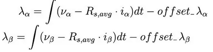 磁鏈?zhǔn)紫仍陟o態(tài) (a,b) 幀按照反電動(dòng)勢電壓時(shí)間積分來計(jì)算: