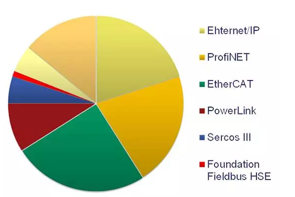 下圖顯示的是全球使用的基于以太網(wǎng)現(xiàn)場總線狀況: