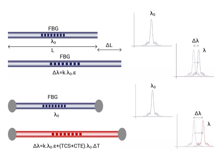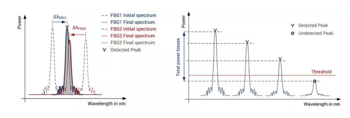 傳感器之間的布拉格波長(zhǎng)距離定義了兩個(gè)傳感器的最大測(cè)量范圍,因?yàn)槿绻盘?hào)重疊,測(cè)量將受到影響。每個(gè)傳感器的使用波長(zhǎng)范圍取決于其測(cè)量范圍,溫度工作范圍,以及傳感器靈敏度、傳感器交叉靈敏度和材料熱膨脹引起的熱感應(yīng)波長(zhǎng)偏移。