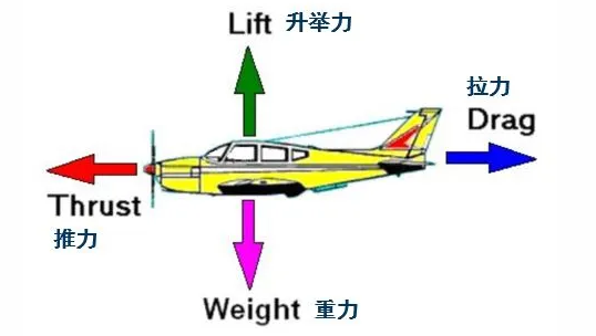影響氣流的4個(gè)主要作用力:升舉力、重力、推力、拉力,這些作用力相互作用。