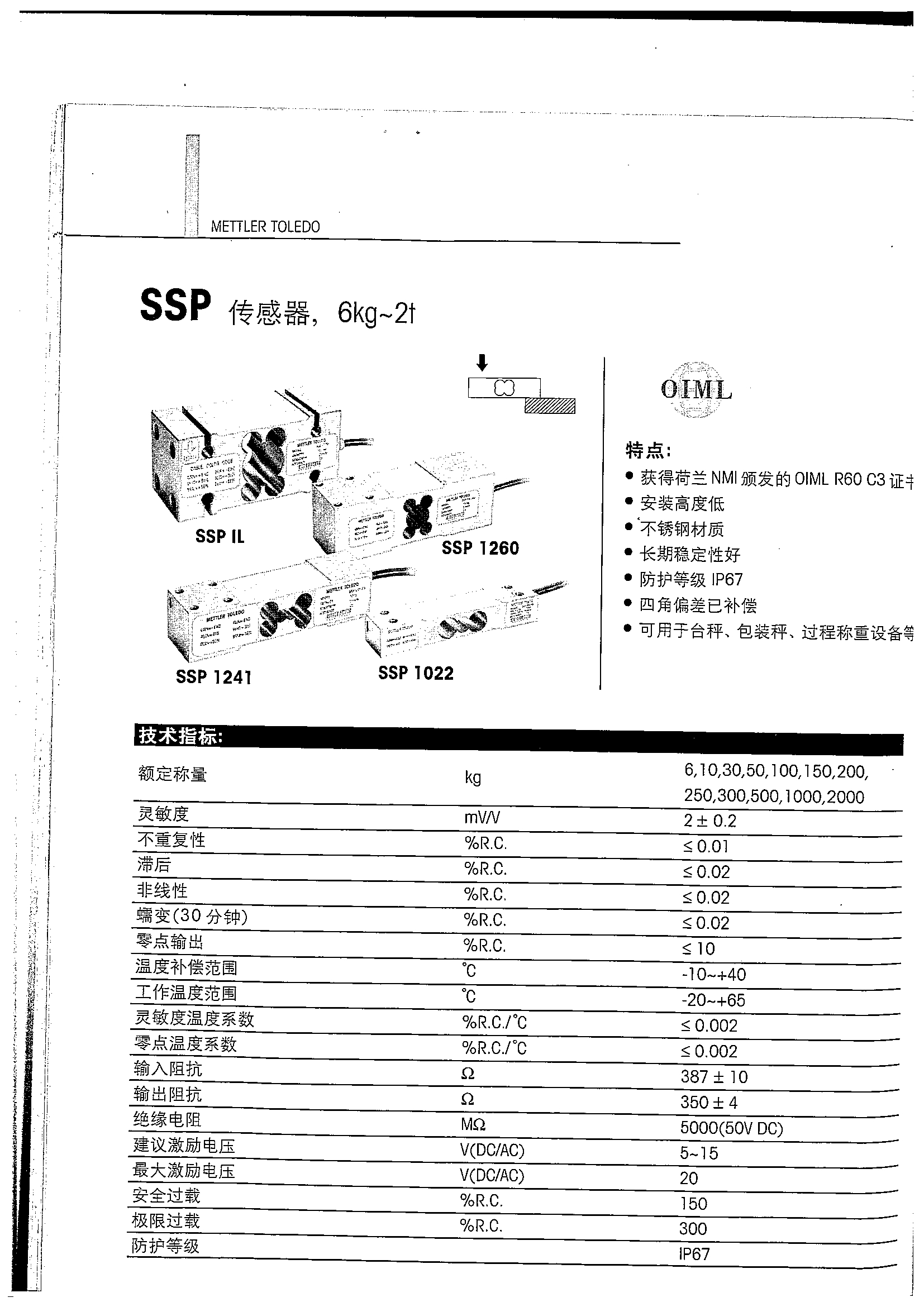 托利多SSP1022-10kg稱重傳感器,SSP1022-10kg,SSP1022-10kg稱重傳感器各項(xiàng)技術(shù)指標(biāo):