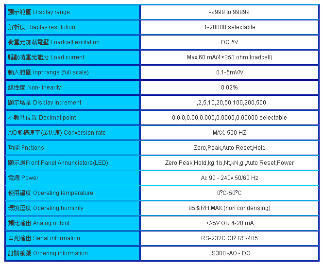 臺(tái)灣JIHSENSE JS-300稱重顯示控制器產(chǎn)品介紹: