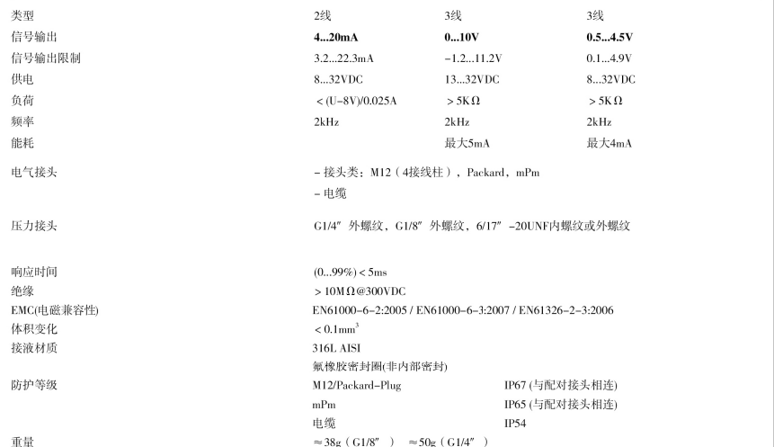 yTI廣州南創(chuàng)電子科技有限公司mPm連接器,M12連接器,Packard連接器和電纜連接用作電氣連接的標(biāo)準(zhǔn)配置。在相對壓力版本中,環(huán)境壓力通過電纜或連接器引入內(nèi)部。