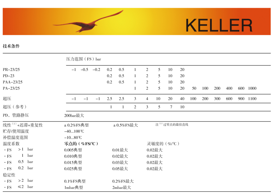 KELLER壓力傳感器PA-23/25Ei廠家電話、