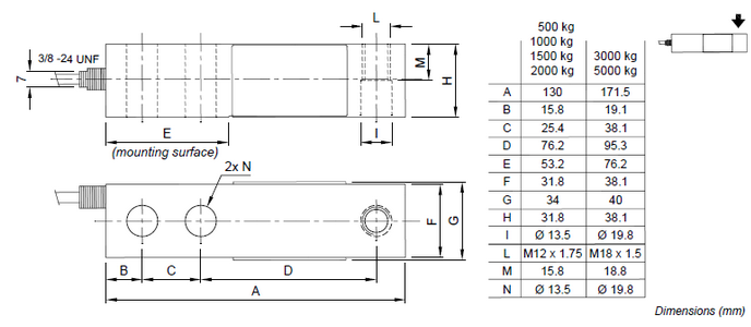 量程可選:500, 1000, 1500, 2000, 3000, 5000kg