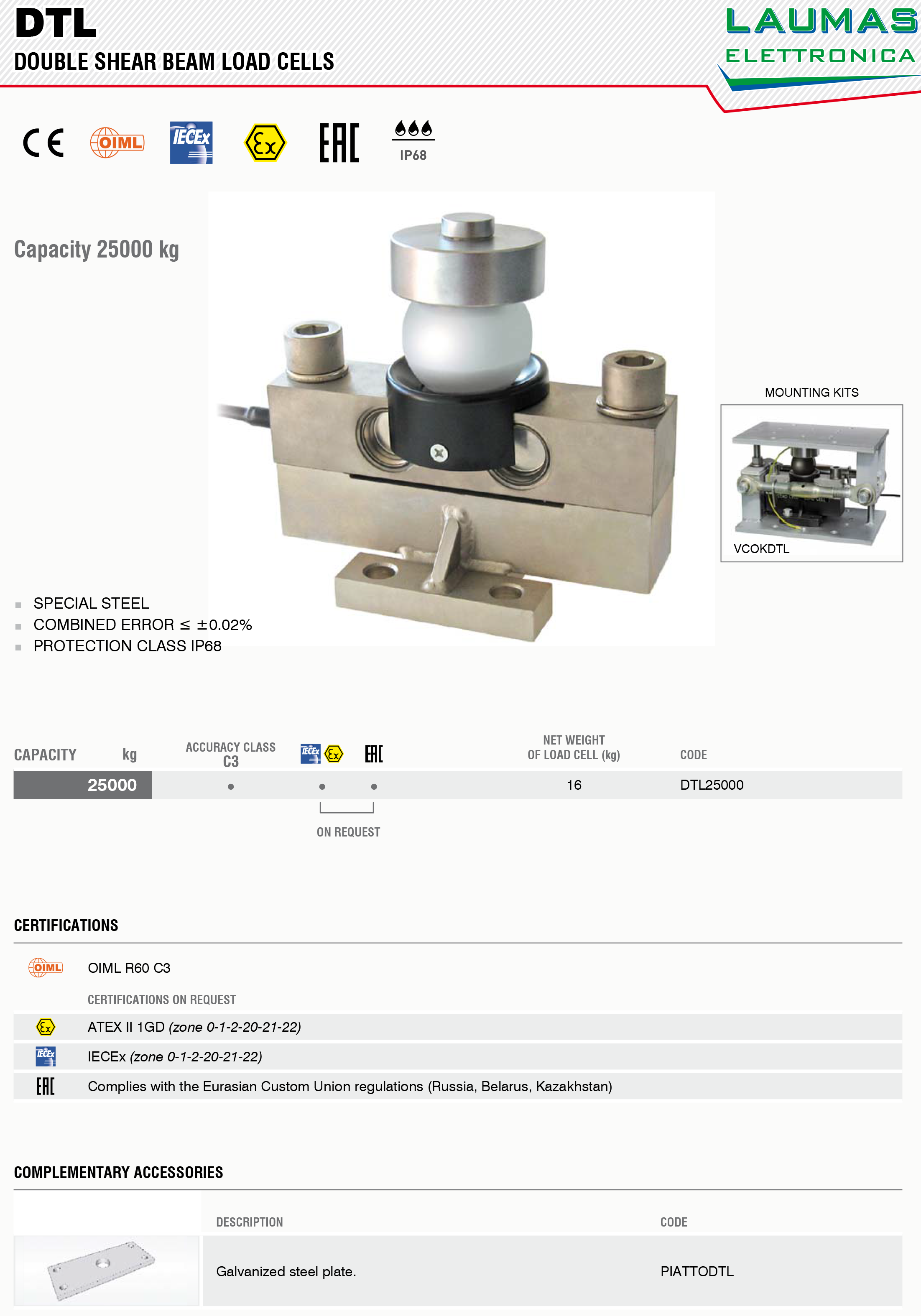 廣州南創(chuàng)專業(yè)提供意大利Laumas_DTL-25000Kg雙剪切梁稱重傳感器,原裝正品,質(zhì)量保證,貨期短,意大利Laumas打造頂級傳感器品牌,【華南區(qū)★一級經(jīng)銷商】做中國的,世界的工業(yè)備品備件分銷專家DTL-25000Kg訂購方便,還可以享受當(dāng)?shù)貍€性化支持,技術(shù)支持,歡迎來電訂購。