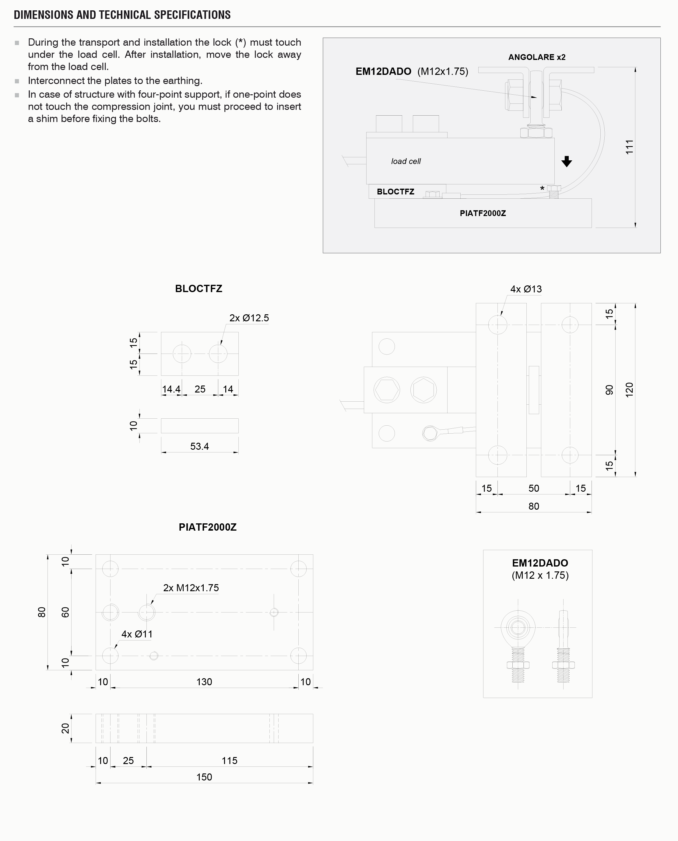 Hot worked galvanized mounting kit designed for silos, mixing machines, tanks, hoppers subject to vibrations because of parts in motion. Provided with a ball joint, adjustable height, against lateral forces and anti-tilt to compensate for misalignment of the support plates.