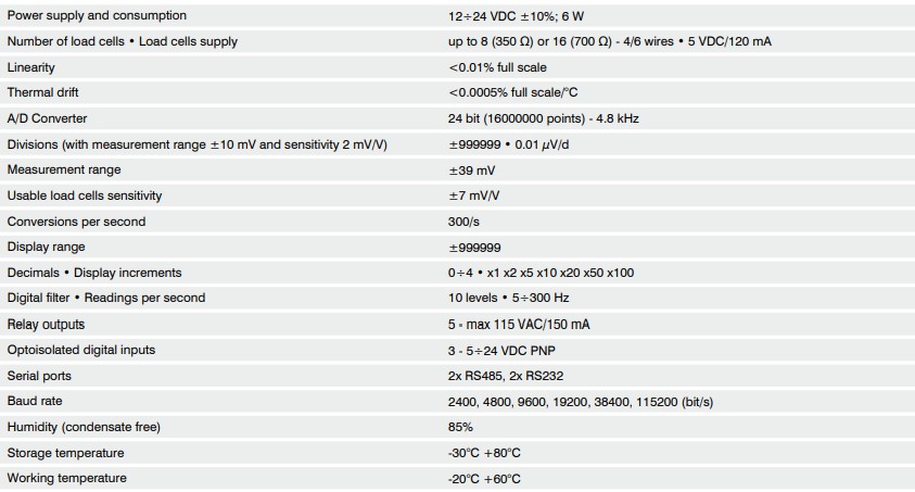 AISI 304不銹鋼重量指示器,尺寸為206 x 286 x 108毫米。IP40防護(hù)等級(D-SUB連接器)。52鍵薄膜鍵盤。實時時鐘/日歷。