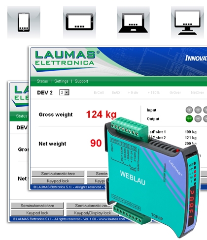 所述WEBLAU裝置是為所有安裝的有用支持/ LAUMAS的經(jīng)銷商稱重儀表,因?yàn)樗梢愿p松的遠(yuǎn)程維護(hù),允許控制的地方,連接到RS485儀器包括可能的異常的狀態(tài)。