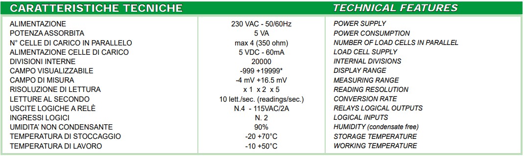 PASSWORD DI PROTEZIONE: Possibilità di impedire l’accesso alla programmazione costanti e alla calibrazione mediante il settaggio di un parametro interno.