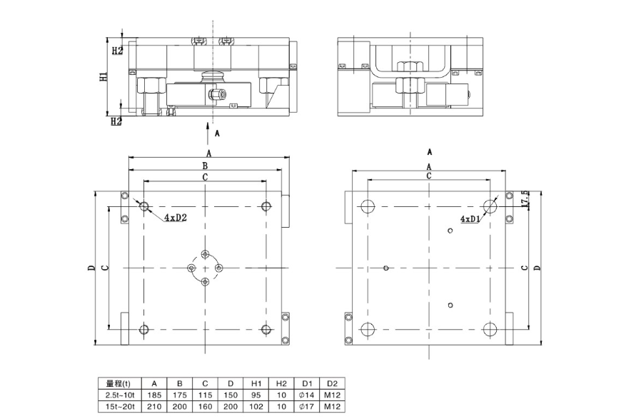 CBF稱重傳感器,適用于地上衡、配料秤、低平面臺秤。型號:CBF-2t。AuM廣州南創(chuàng)電子科技有限公司