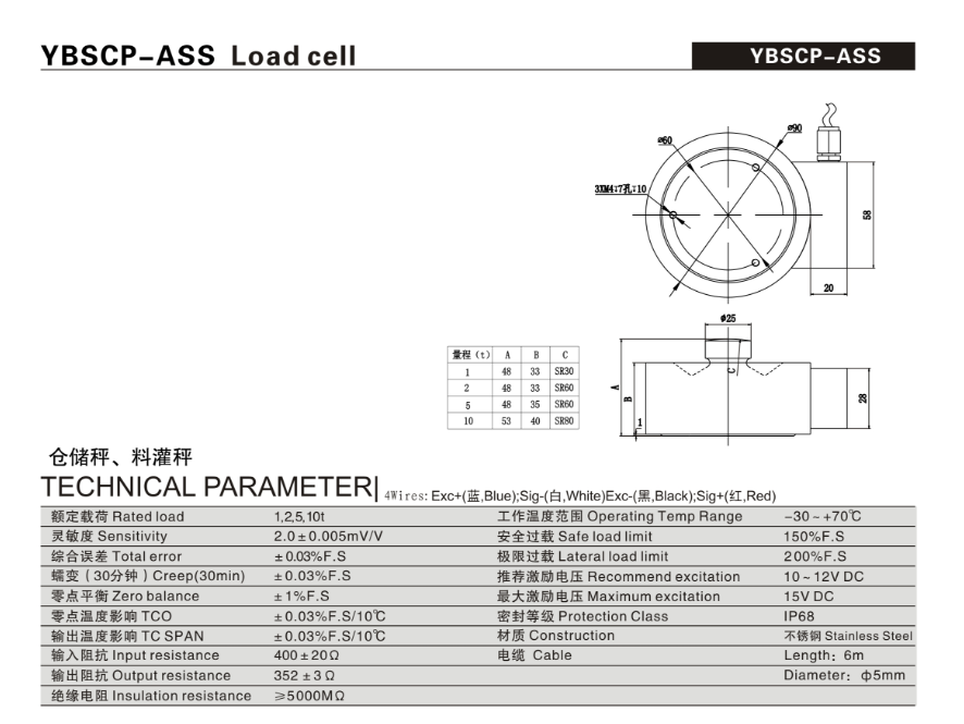 ShS廣州南創(chuàng)電子科技有限公司寧波柯力YBSCP-ASS-1t稱重傳感器特點(diǎn):ShS廣州南創(chuàng)電子科技有限公司YBSCN傳感器量程:2.5t/5t/10t/15t/20t