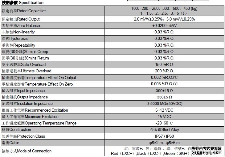 臺(tái)灣Mavin稱重傳感器NS1所有量程: