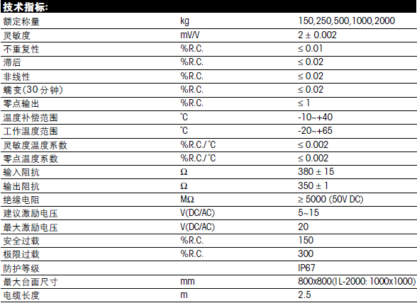 梅特勒托利多稱重傳感器IL-500kg產(chǎn)品參數(shù):rgk廣州南創(chuàng)電子科技有限公司