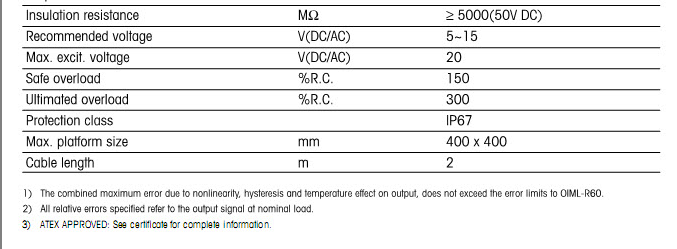 梅特勒托利多MT1041傳感器系列型號技術(shù)參數(shù)圖如下(Technology parameters):