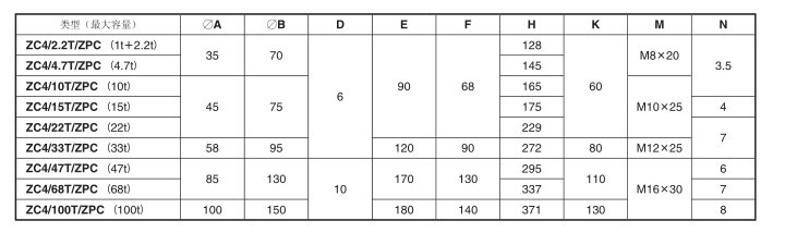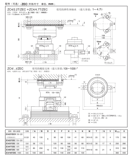 美國NCH稱重傳感器ZC4-100T尺寸圖: