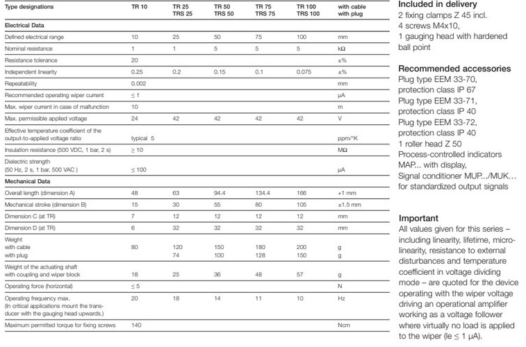 KCb廣州南創(chuàng)電子科技有限公司諾沃泰克TR-0010 TR-0075直線位移傳感器測(cè)量觸點(diǎn):帶有 M5x0.5 滾花的硬質(zhì)鋼球,淬火處理,帶緩沖彈力