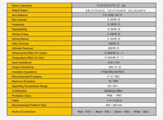 CW5012稱重傳感器系列量程:
