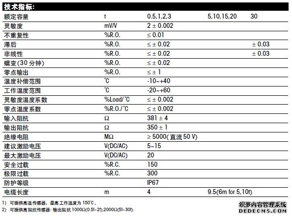 可提供高阻抗傳感器:輸出阻抗1000Ω(0.5t~2t),2000Ω(5t,30t)。