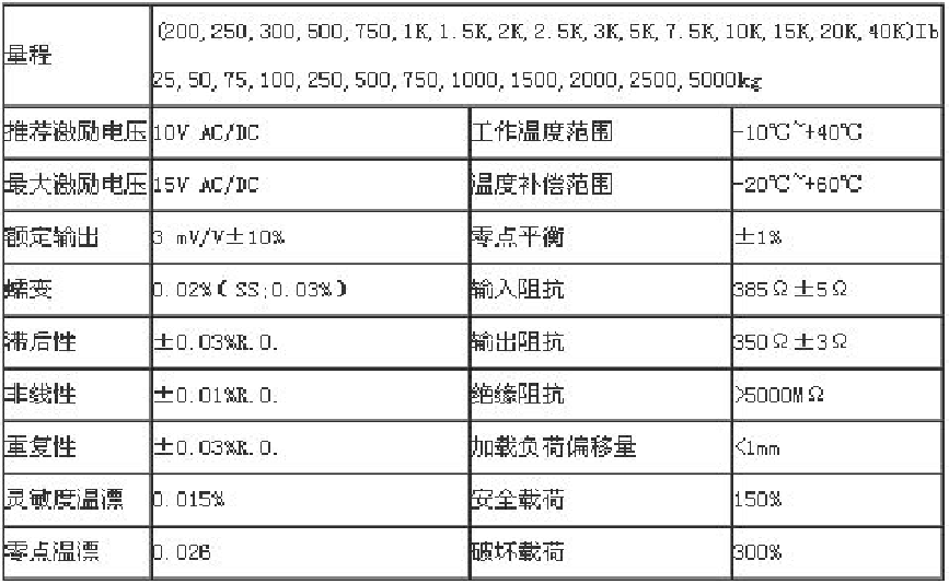額定輸出3mV/V±10%零點平衡±1%
