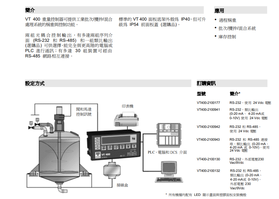vishay Revere VT400稱重顯示控制器型號類別技術(shù)參數(shù)選型安裝等資料信息,如果有關(guān)