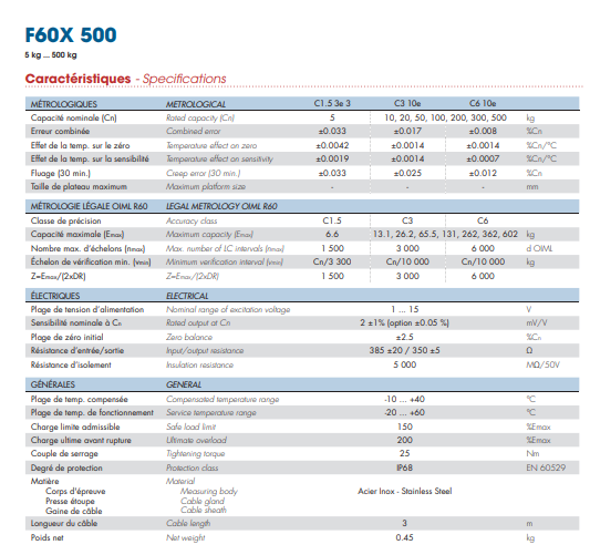 法國世感稱重傳感器F60X-50kg信息參數(shù)圖: