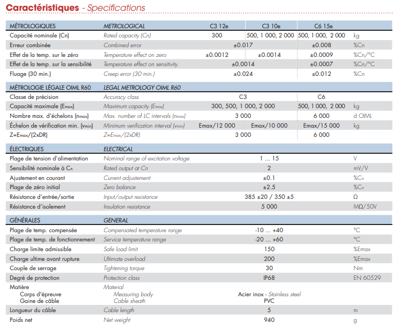 法國(guó)世感Scaime稱(chēng)重傳感器產(chǎn)品參數(shù)圖:gqC廣州南創(chuàng)電子科技有限公司