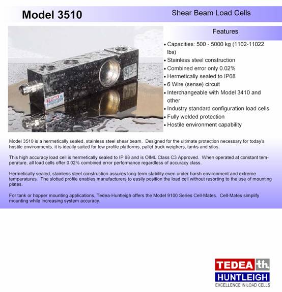 美國(guó)Tedea-Huntleigh 3510-2000kg稱重傳感器所有型號(hào):