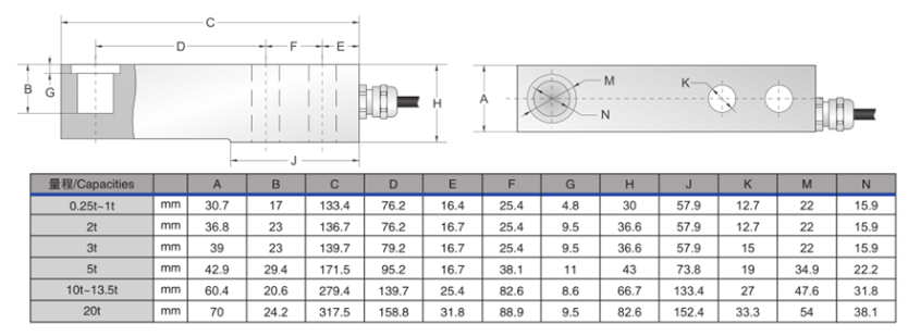 OQu廣州南創(chuàng)電子科技有限公司美國(guó)傳力Transcell稱重傳感器SBSZ-250kg技術(shù)參數(shù)圖:OQu廣州南創(chuàng)電子科技有限公司