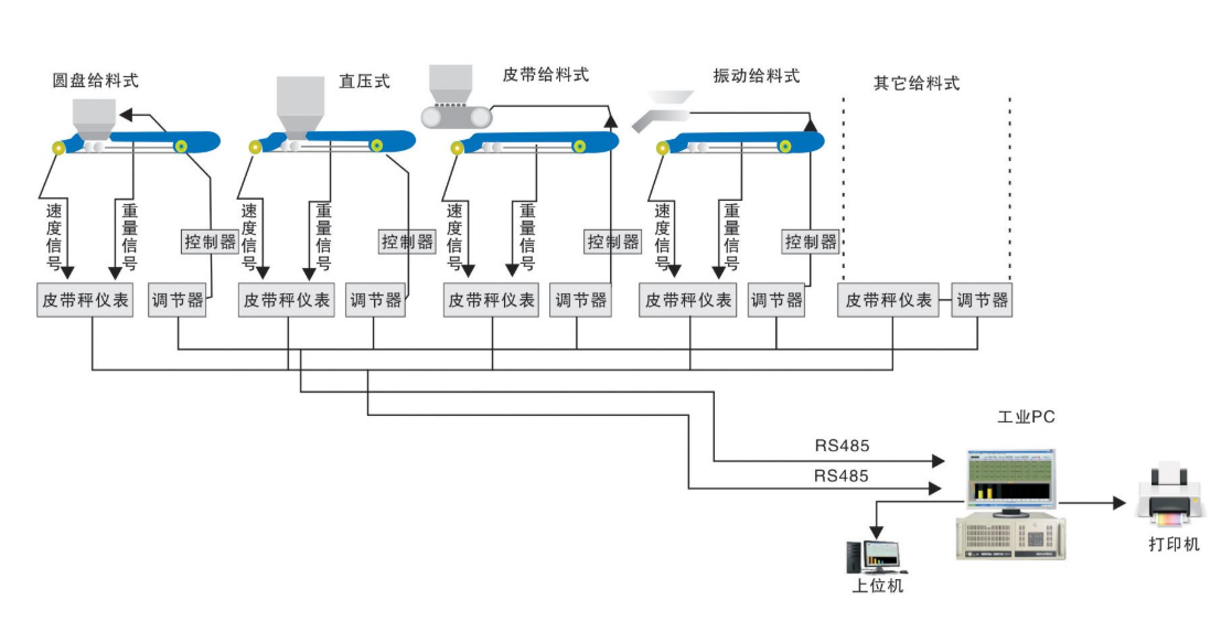 化學(xué)工程,建材,冶金工程中,經(jīng)常需要對(duì)各種材料進(jìn)行連續(xù)的配料,所以常采用失重秤。自動(dòng)稱重配料控制系統(tǒng)中的失重秤體是基于斗式秤的結(jié)構(gòu),可以直接用砝碼進(jìn)行校準(zhǔn)。通過測(cè)試秤的瞬時(shí)重量,計(jì)算出實(shí)際出料量,然后進(jìn)行閉環(huán)調(diào)節(jié),達(dá)到較高的控制精度。一般來說,累積精度為0.5%。由于鏟斗的結(jié)構(gòu)和校準(zhǔn),該系統(tǒng)的維護(hù)比皮帶秤容易得多。
