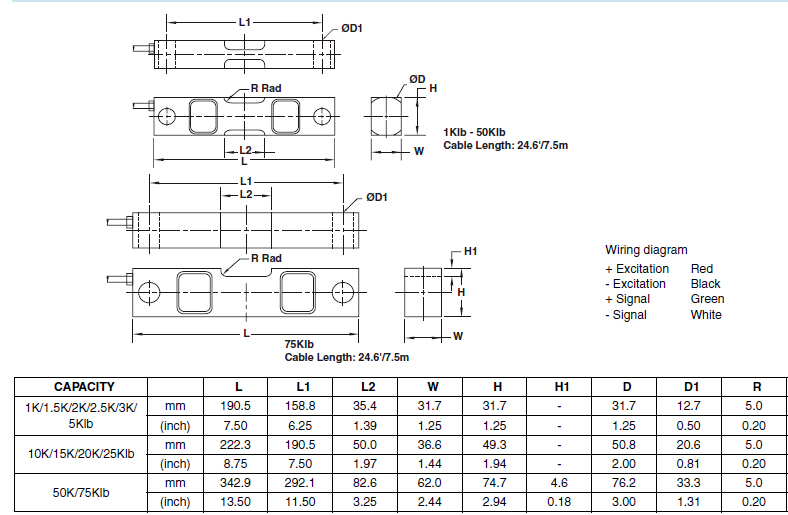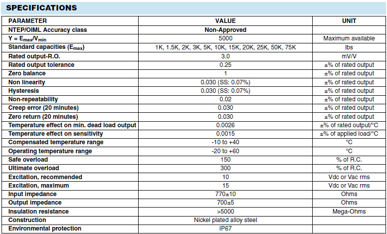 美國世銓Celtron DSR系列稱重傳感器所有量程如下: shQ廣州南創(chuàng)電子科技有限公司