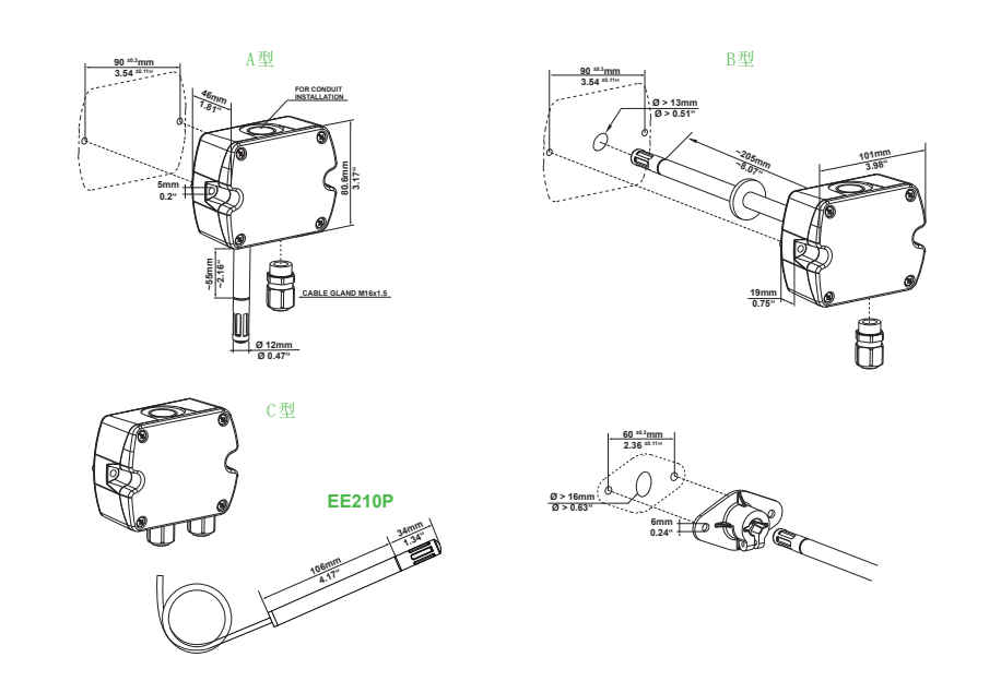ee210溫濕度探頭適用于美標的安裝要求,口徑抗沖擊電纜連接結(jié)構(gòu) 顯示屏 書簽 外部固定安裝孔 不用打開封蓋即可安裝 。有效對抗施工現(xiàn)場污染 RH-3730 T. 24.32% ,可選的帶顯示設(shè)計 ,對濕敏元件表面進行保護